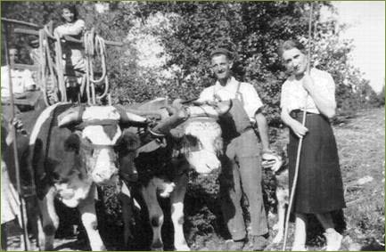…Dans les pays de montagne le fromens, le seigle, l’orge et l’avoine se moissonnent aussi généralement avec la faucille … on commence à adopter l’usage de faucher, une femme suit immédiatement le faucheur, et range derrière lui le blé qu’il a abattu pour être lié en gerbes. (Statistiques du Préfet Bossi – 1808)